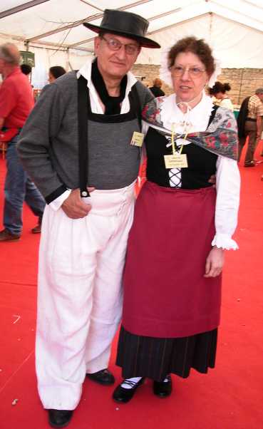 l'homme (Henri) porte une tenue de marin normand. la femme (Chantal) porte la tenue traditionnelle de Normandie avec bonnette et culotte fendue appelé chez nous : "pisse-debout". |