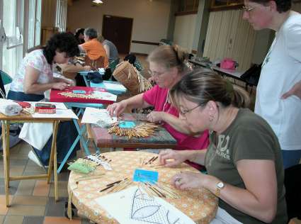 | La tapisserie de Bayeux intéresse particulièrement nos amies de Bosnie et Daniel doit tout traduire avec les mains. | Les membres du CA de DBCC sont encore là pour aider les débutantes. |