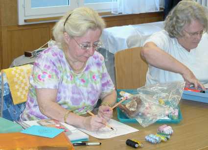 Avant de s'installer, on regarde avec attention quelques travaux de Chantal et Claudette.
