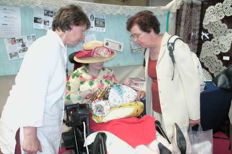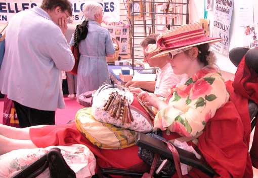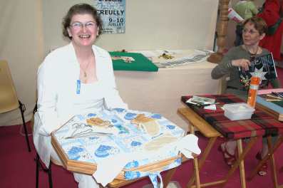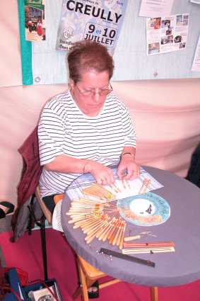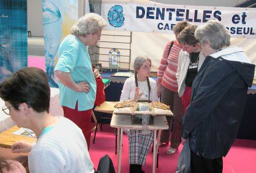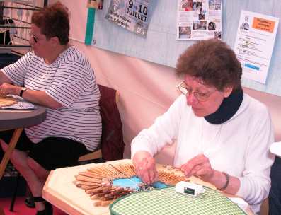 admirer chez nous des tables remplies de dentelles faites par les dentellières de l'association DBCC. |