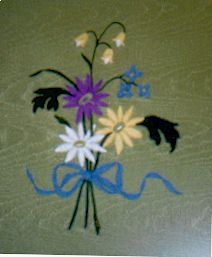 Travaux en polychrome de Courseulles, parfois dessinés, mis en carte et réalisés par Geneviève..